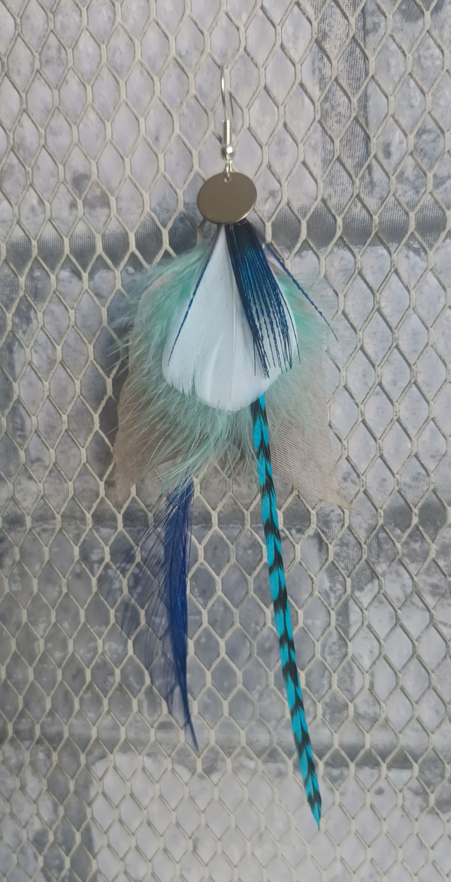 Le bleu est à l'honneur avec cette paire composée de plumes de poule, de coq, d'oie, de coq filant et grizzly.