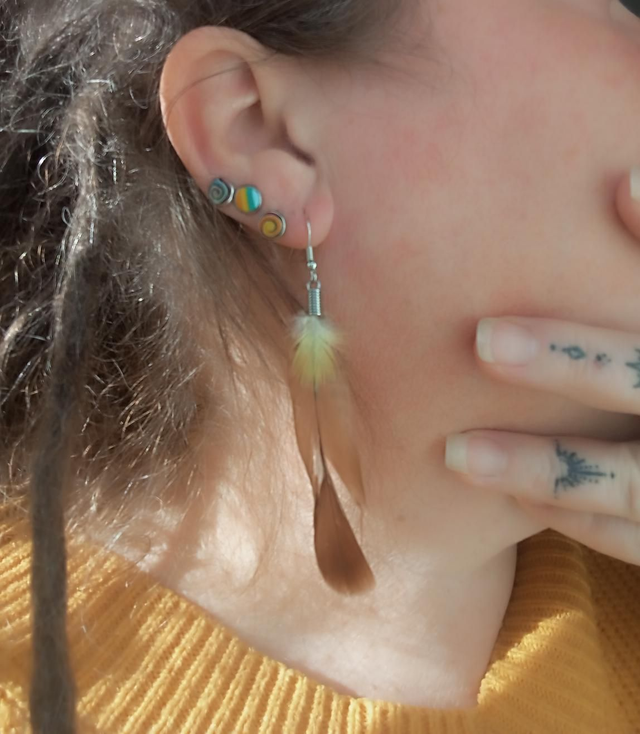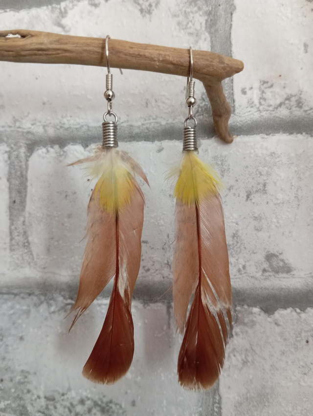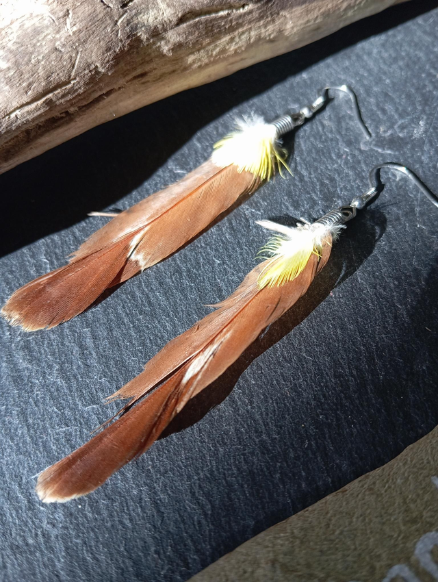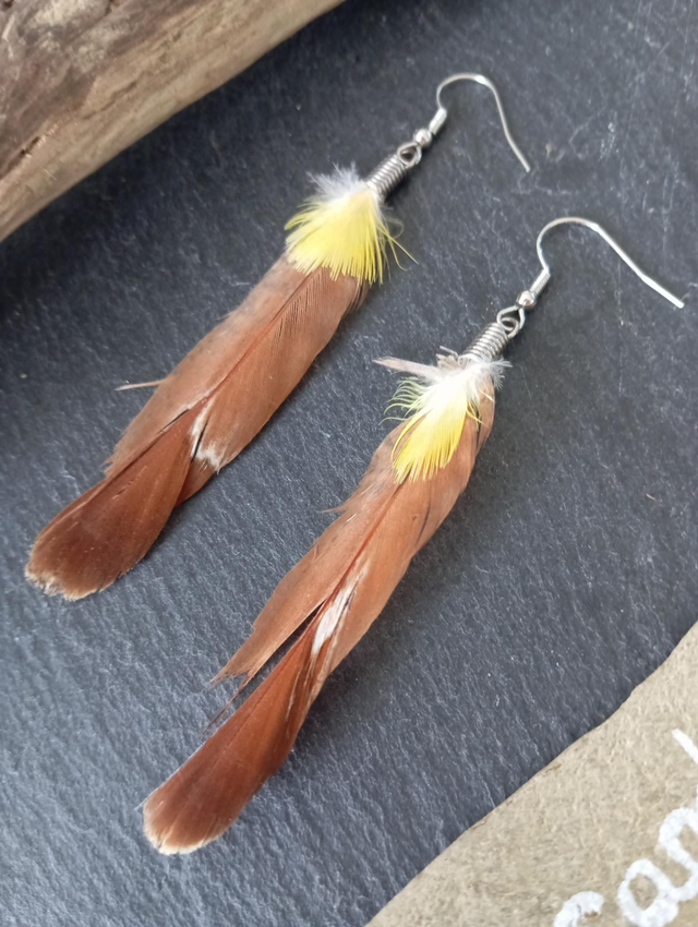 Boucles d'oreilles en plumes naturelles.